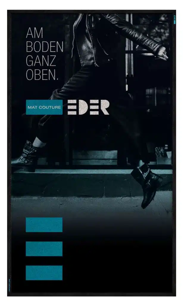 EDER Matten sind die erste Barriere gegen Schmutz und Feuchtigkeit, und nehmen erstaunliche Mengen direkt am Entstehungsort auf. So erzielen Sie unbemerkt einen hohen Hygienestandard im gesamten Gebäude und reduzieren den laufenden Reinigungsaufwand drastisch. Mit Ihrer individuellen Werbematte nutzen Sie zudem Ihren Boden als Werbefläche und schlagen somit zwei Fliegen mit einer Klappe.